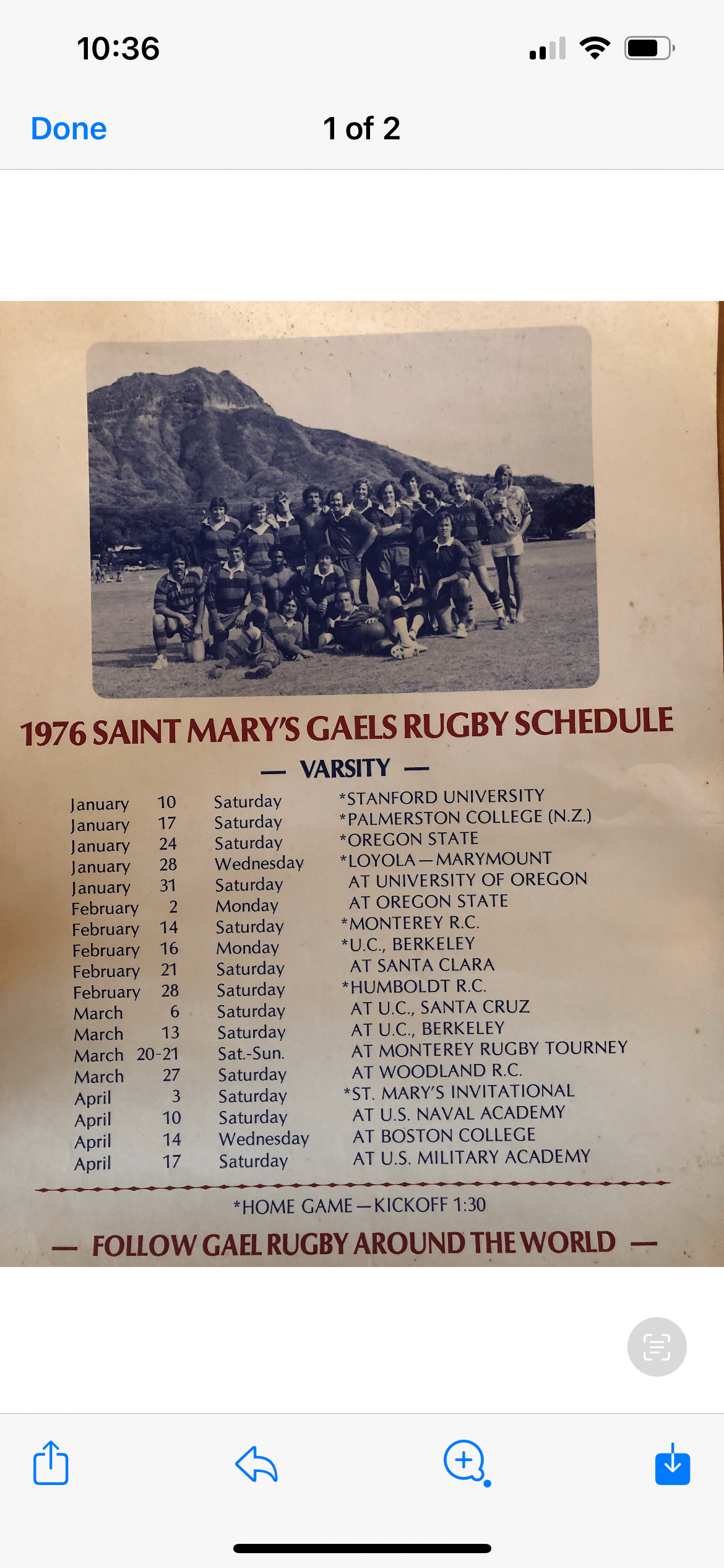 1976 season schedule had picture of 1975 team in Hawaii with Diamond Head in the background.